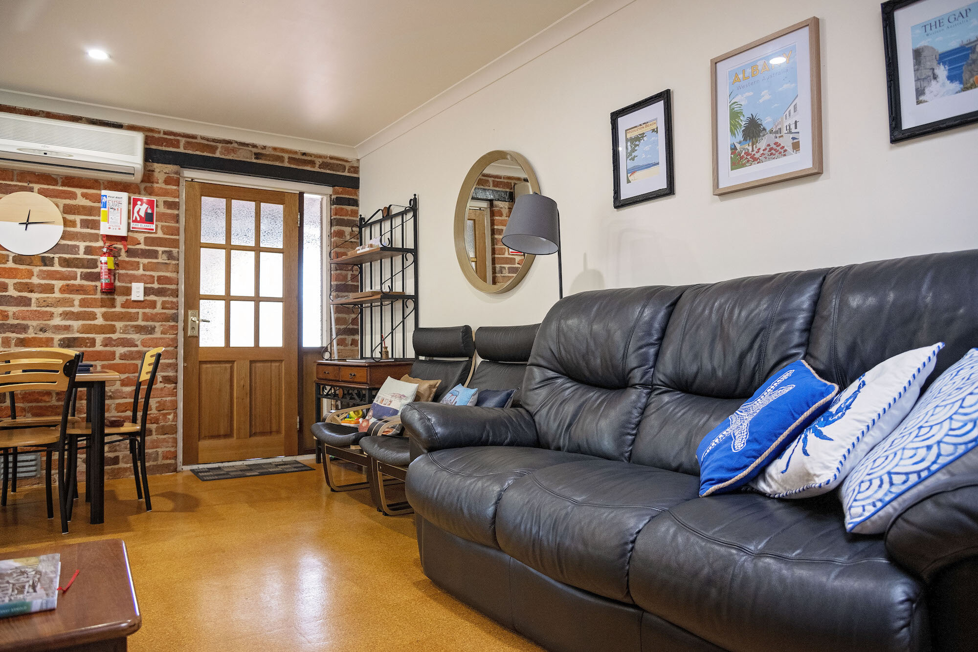 The bedrooms include one queen room and two rooms with two single beds in each room. The bathroom is recently renovated with a walk-in shower and built in laundry. The kitchen is fully equipped for self-catering and open plan to the cosy dining/living area.